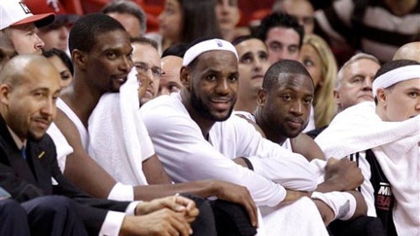 Miami obtuvo una ventaja de 49-31 al final de la primera mitad, luego que Bosh, James y Wade anotaron todos al menos 10 unidades, mientras que los titulares de los 76ers no pudieron detener el poderío ofensivo de Miami.