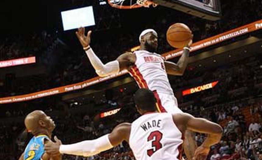 Dwyane Wade anotó el viernes 26 puntos y LeBron James aportó 19 tantos y 12 rebotes para que el Heat de Miami venciera 99-79 a los 76ers de Filadelfia.
