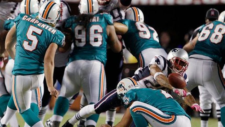 Los equipos especiales le costaron 21 puntos a Miami en la derrota 41-14 la noche del lunes. Dos bloqueos de patadas derivaron en touchdowns y Patriots también anotaron en una jugada de despeje que cubrió 103 yardas.