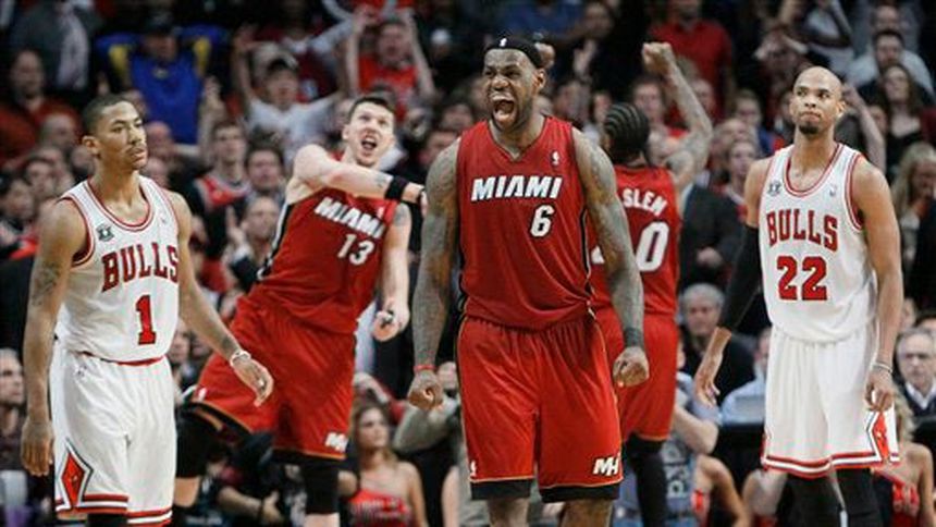 LeBron James y Wade se combinaron en el último cuarto con 16 puntos de los 18 que marcó su equipo en una ofensiva de 18-3, determinante para eliminar al equipo comandado por Derrick Rose, MVP de la temporada, y coronarse como monarcas del Este.