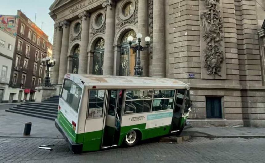 Micro choca y queda en escalinatas del Congreso capitalino, en el Centro Histórico
