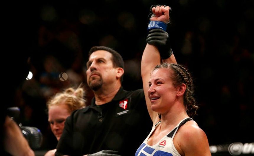 El referee levanta la mano de Miesha Tate tras ganar a Holly Holm | AP
