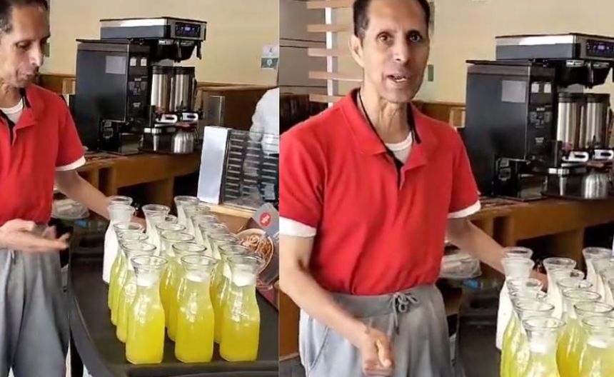 Fue por medio de Tik Tok, que Miguel Luis compartió un video en el que explica que está repartiendo aguas de piña y cacahuate, e incluso se le ve que lo hace con buen humor y alegre cumpliendo con sus funciones.