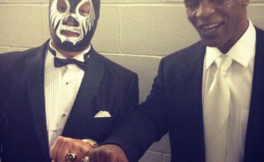 El ex boxeador estadounidense y Campeón de los Pesados Mike Tyson aprovechó la ceremonia de inducción al Salón de la Fama de la WWE, realizada este sábado en el Sun Life Stadium de Miami, para tomarse una fotografía con el luchador mexicano Mil Máscaras.