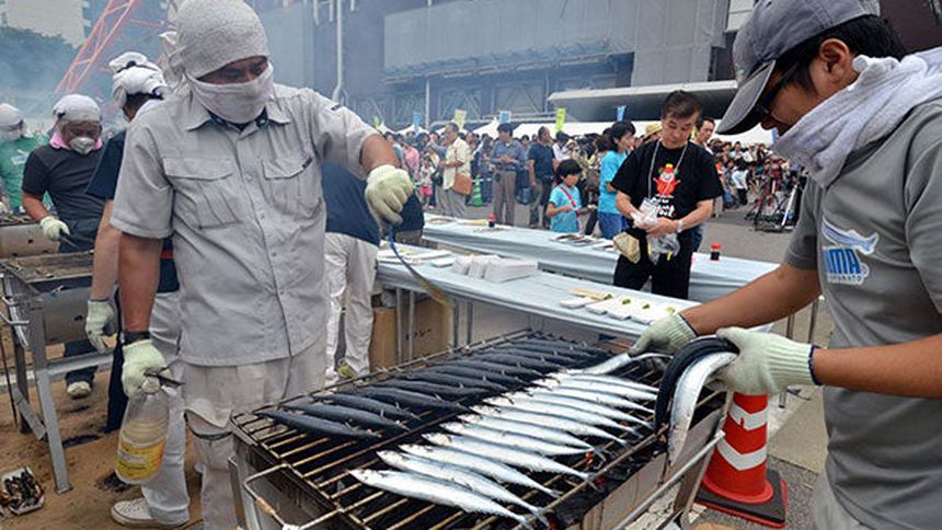 Para conmemorar el 55 aniversario de la Torre de Tokio se distribuyeron gratuitamente entre la población 5 mil 555 parpadas del Pacífico, cocinadas a la manera tradicional, provenientes de la región de Ofunato, uno de los grandes centros de distribución de este ejemplar.