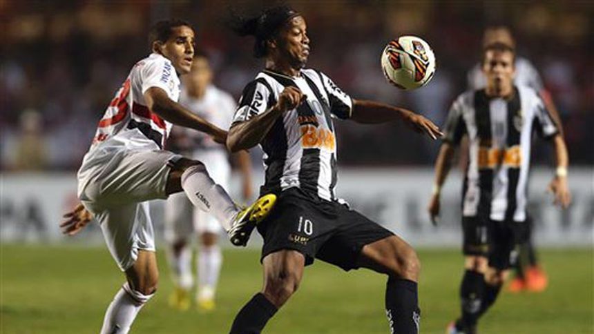 Atlético Mineiro aprovechó la superioridad numérica y el talento de Ronaldinho y logró un crucial triunfo de 2-1 como visitante sobre Sao Paulo, en su primer choque por los Octavos de Final de la Copa Libertadores.