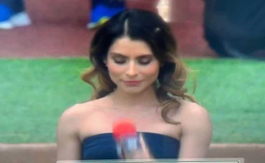 María León se terminó equivocando en la primera estrofa del himno al cambiar la frase: "Por el dedo de Dios se escribió", cantando: "un soldado de Dios se escribió".