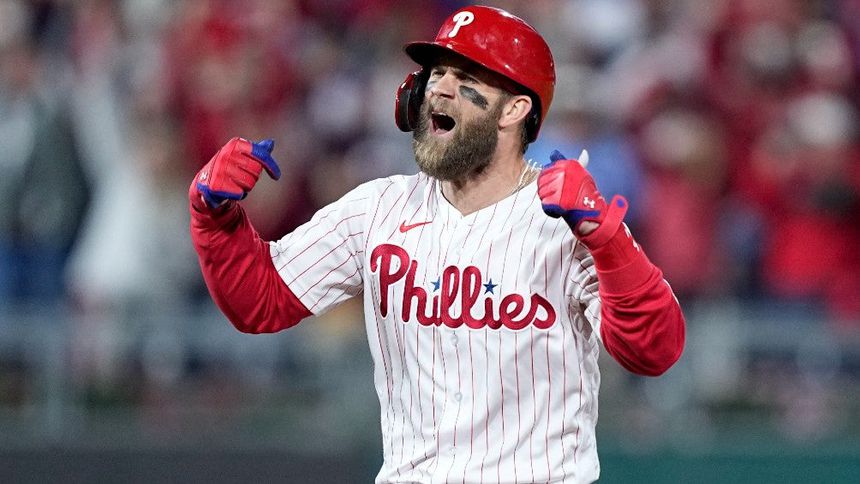 Bryce Harper llegó de pie a la intermedia con un batazo que significó la ventaja. Luego, deslizó las manos por la parte frontal de su jersey, para resaltar el nombre de su equipo, ante un público enloquecido en el Citizens Bank Park.