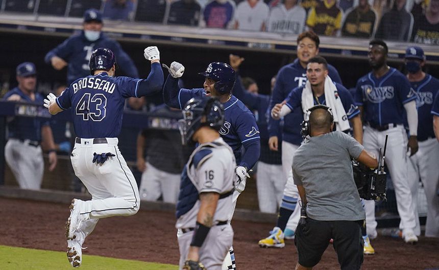 Una recta a 100 mph fue conectada por Brosseau para que la pelota desapareciera entre las butacas vacías del jardín izquierdo del Petco Park, en lo que fue apenas el tercer hit de los Rays en el encuentro.