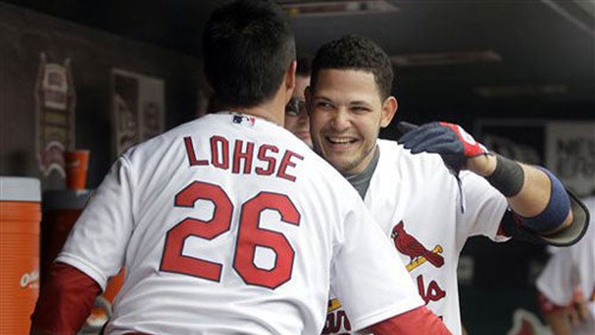 El puertorriqueño Yadier Molina empató una marca en su carrera al batear el sábado de 4-4, con un jonrón de dos carreras, y Kyle Lohse permitió tres anotaciones en poco más de seis entradas para conducir a los Cardenales de San Luis a una victoria por 7-3 sobre los Cerveceros de Milwaukee.