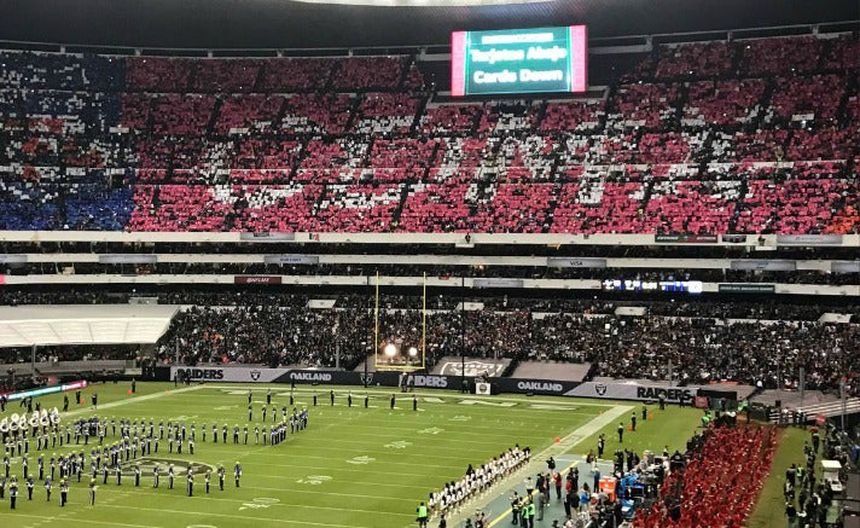 La NFL agradeció a México el ser anfitrión del Monday Night Football a través de un mosaico, creado con la ayuda de la afición, en el descanso del partido en el Estadio Azteca.