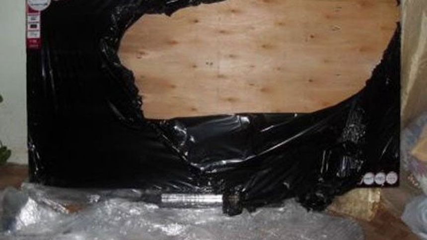 Sin embargo, al abrir la caja, quitar el unicel y el plástico protector, se percató de que un trozo de madera se asomaba en la esquina, del supuesto aparato.