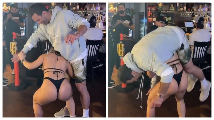 La mujer, vestida únicamente con lencería, realiza levantamientos de sentadilla con el ex campeón de UFC, dejando atónitos a los presentes.