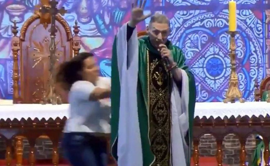 Mujer subió al escenario y empujó a un padre durante misa en Brasil