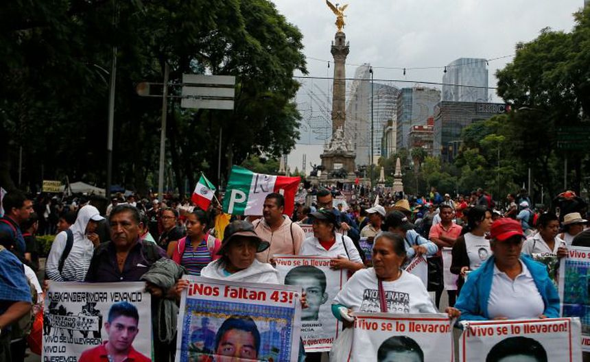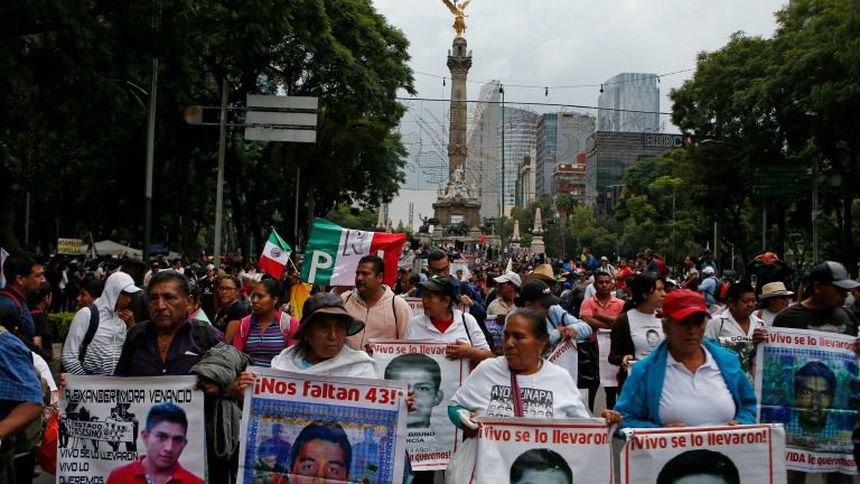 Miles de estudiantes, representantes de organizaciones de derechos humanos y vecinos de la Ciudad de México marcharon desde el Ángel de la Independencia hacia el Zócalo capitalino al cumplirse dos años de la desaparición de los 43 estudiantes de Iguala, Guerrero.