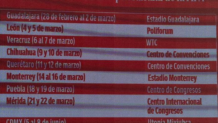 Las siguientes paradas serán Chihuahua (9 y 10 de marzo, Centro de Convenciones), Querétaro (11 y 12 de marzo, Centro de Convenciones) y Monterrey (14 al 16 de marzo, Estadio Monterrey)