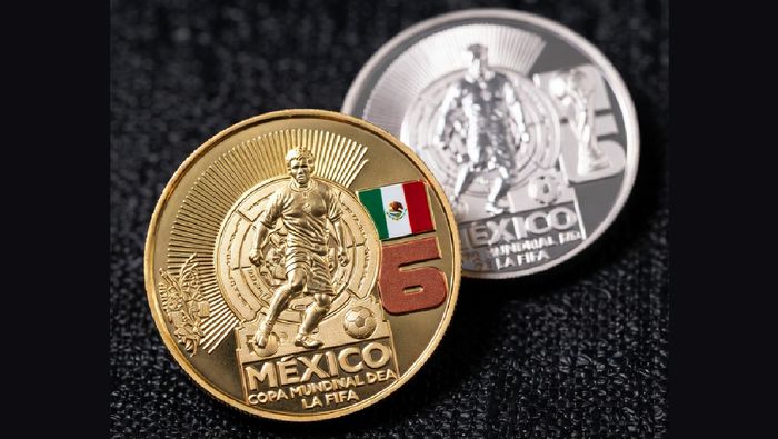 Las piezas serán de oro puro, plata pura y una versión bimetálica, con valores nominales de 25, 20 y 10 pesos, respectivamente. Se trata de una edición especial que celebrará que México será sede mundialista por tercera ocasión en la historia, tras 1970 y 1986.