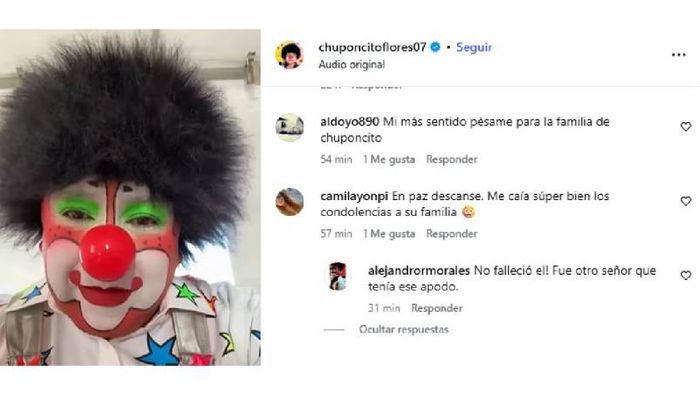 Tras difundirse la noticia, en redes sociales comenzaron los mensajes de confusión dirigidos al comediante: “Chuponcito, ayúdanos a aclarar lo de la noticia falsa que se rumora de que falleciste”, “¿Se murió?”, “En paz descanse. Me caía súper bien, mis condolencias a su familia”.