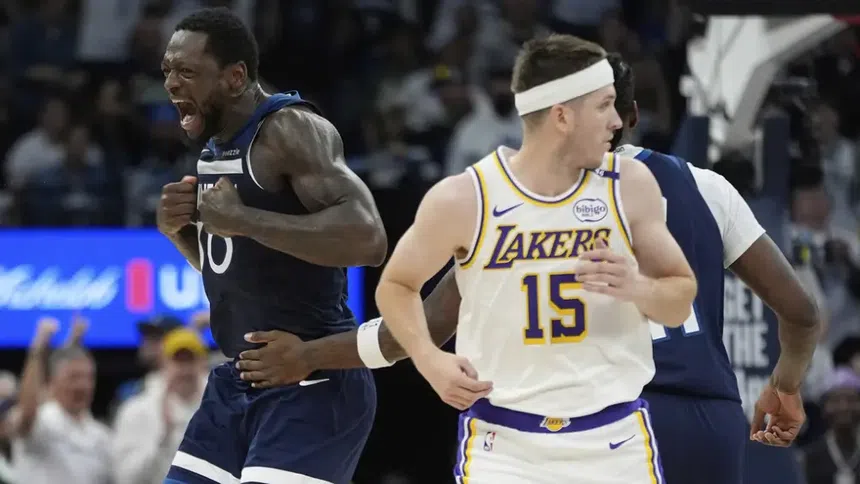 Jaden McDaniels convirtió una jugada de tres puntos con 39.5 segundos restantes para tomar la delantera y robó el pase de entrada subsiguiente de LeBron James, liderando una remontada de los Timberwolves de Minnesota para una victoria de 116-113 sobre los Lakers de Los Ángeles que los puso 3-1 en la serie de primera ronda el domingo.