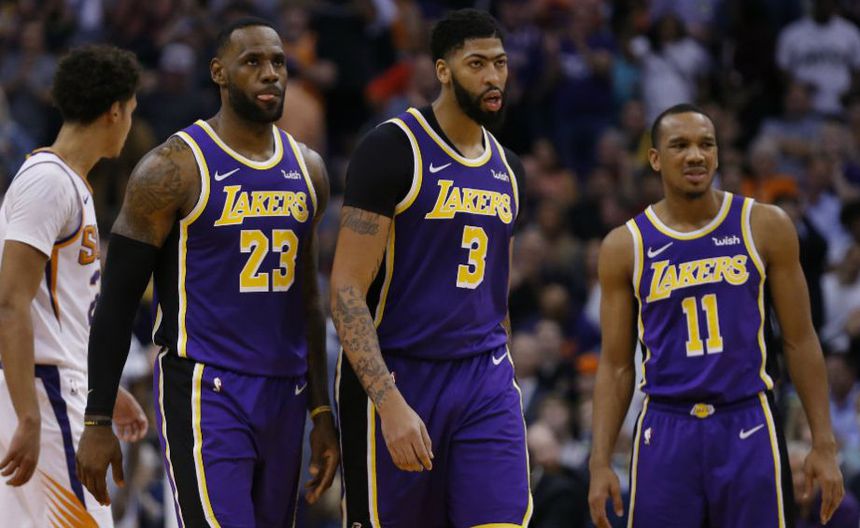 LeBron James, Anthony Davis y Avery Bradley con los Lakers | AP