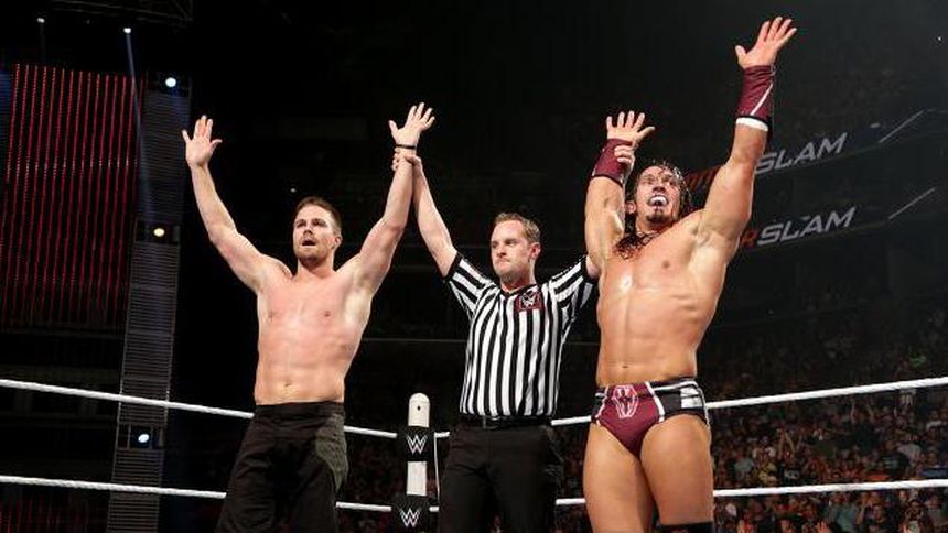 Los increibles vuelos de Neville terminaron por darle la victoria junto a Stephen Amell contra King Barret y Stardust.