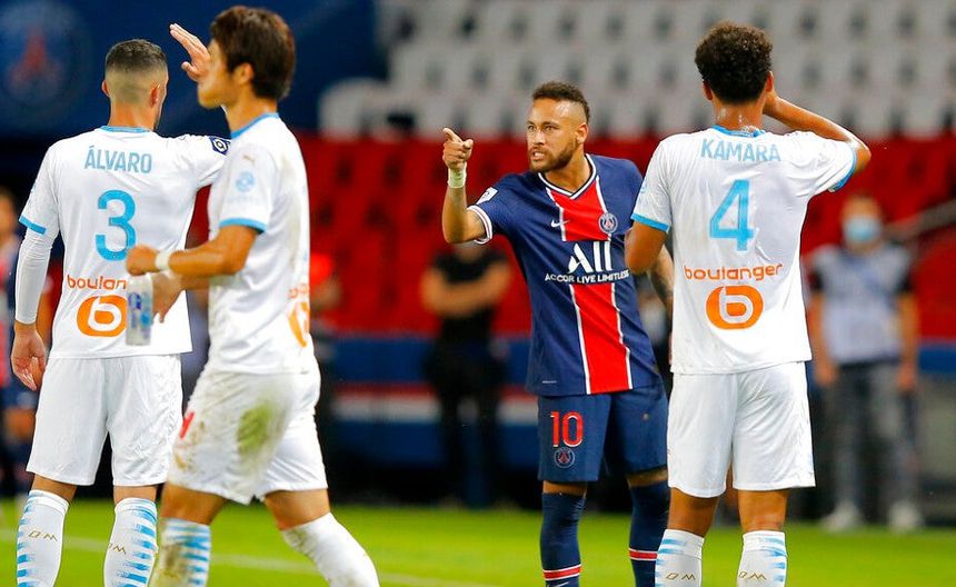 Neymar discutiendo con Álvaro González en Clásico francés | AP