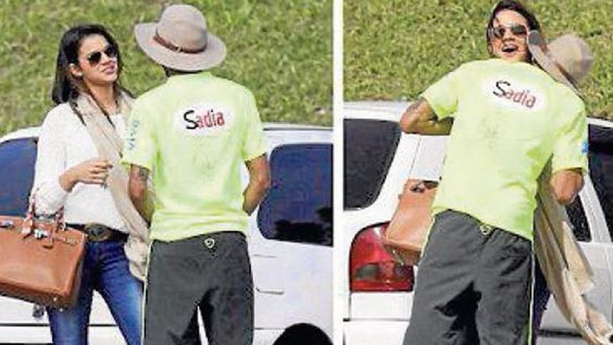 Neymar recibió la visita de su novia, la actriz Bruna Marquezine, durante una de sus prácticas con la selección brasileña de cara al Mundial en el país sudamericano.