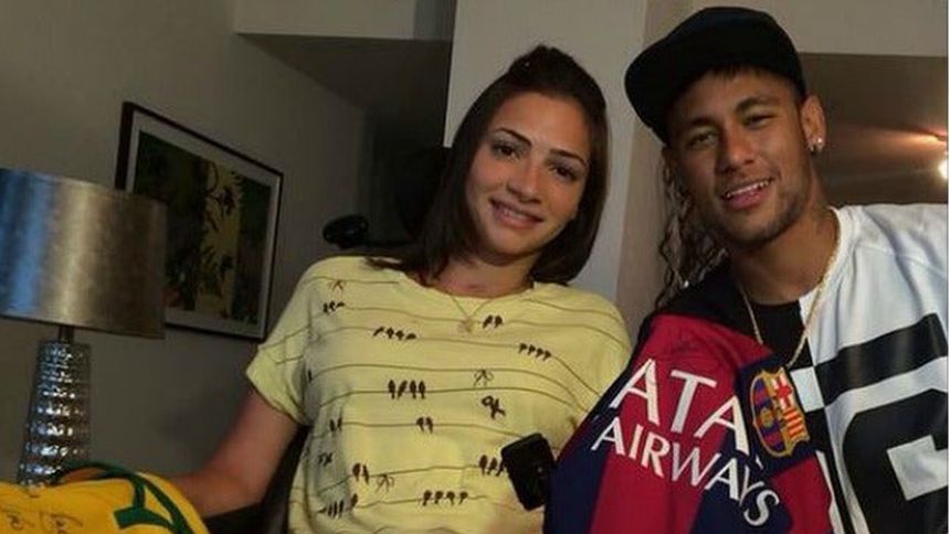 Neymar publicó una fotografía de su visita, en donde le regaló dos playeras, una de Brasil y otra del Barcelona. El futbolista agregó un mensaje en el que le desea que se recupere pronto.