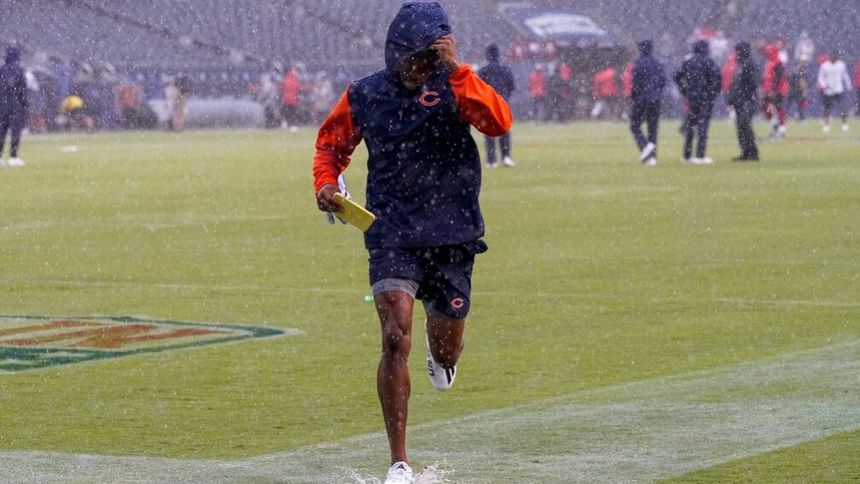 Una fuerte lluvia dejó malparado al estadio de los Bears, pues se encharcó en varias zonas, lo cual dificultaría del desarrollo del encuentro.