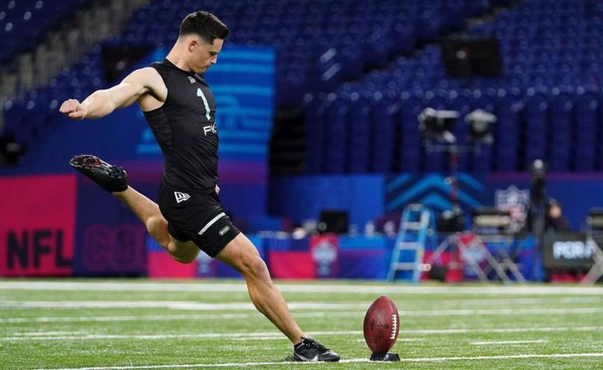 El mexicano Matt Araiza realizando una patada de despeje | INSTAGRAM: @MATRARAIZA