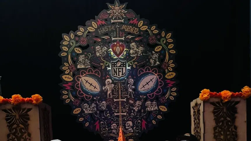El morado, naranja y negro vistieron el Frontón Bucareli y juntaron a una gran cantidad de aficionados de la NFL. Los altares, la flor de cempasúchil y el olor a incienso hicieron una mañana-tarde mágica con distintos partidos de la jornada dominical.