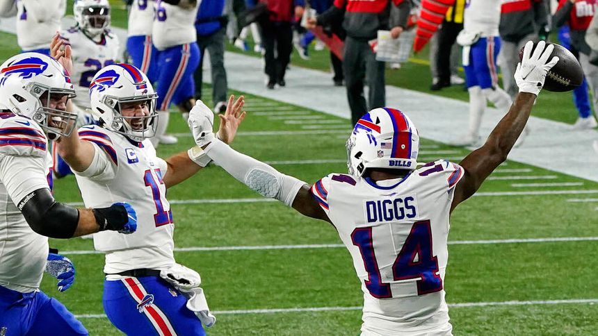 Stefon Diggs tuvo nueve recepciones para 145 yardas y tres touchdowns, estableciendo un récord de los Bills en yardas por recepción en una sola temporada.