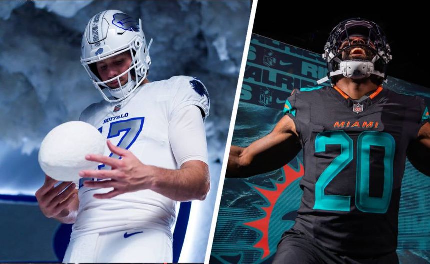 Aunque todos rompen con los esquemas tradicionales, algunos de los diseños más llamativos, especialmente por su colores, son los de Patriots, Dolphins, Bills y 49ers.