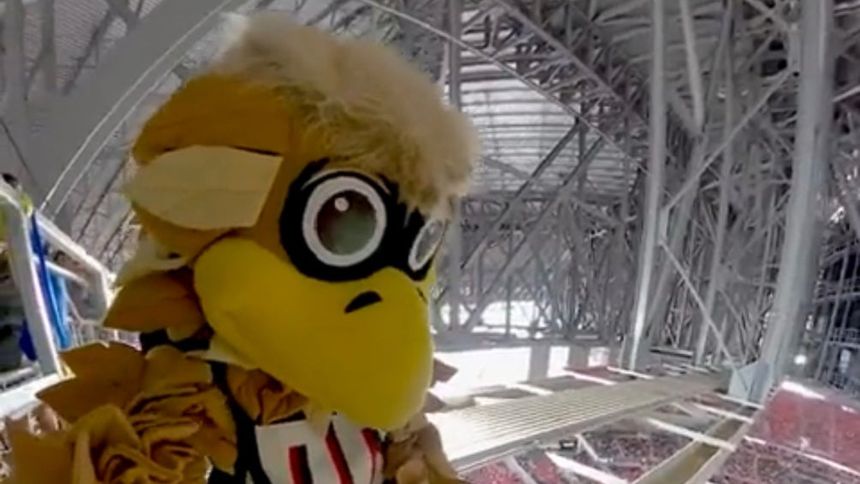 Mientras seguía su recorrido, 'Freddie The Falcon' comenzó a realizar unas piruetas para el público que ya se encontraba presente en el estadio.