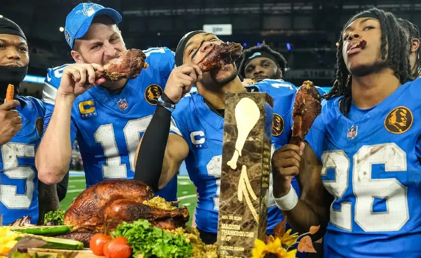 Por su parte, los Detroit Lions juegan en esta fecha gracias a que en su llegada a la ciudad de Detroit, los entonces llamados Portsmouth Spartans, querían llamar la atención de los fanáticos de la ciudad, por lo que se decidió que jugarían en el día de acción de gracias. Si bien ese día cayeron ante los Bears, el equipo fue reconocido y se adueñó del segundo juego de la fecha desde 1934.