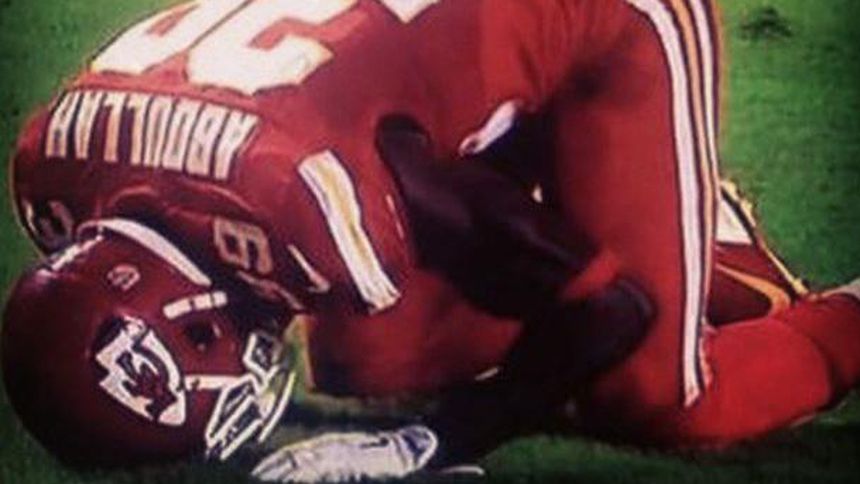 Abdullah se deslizó en el pasto al llegar a la zona de anotación del estadio Arrowhead, y luego inclinó la cabeza en oración. El jugador musulmán, quien dejó de jugar un año para realizar la peregrinación que los fieles deben hacer a La Meca, vio que los árbitros lanzaron las banderas amarillas que señalan castigo.