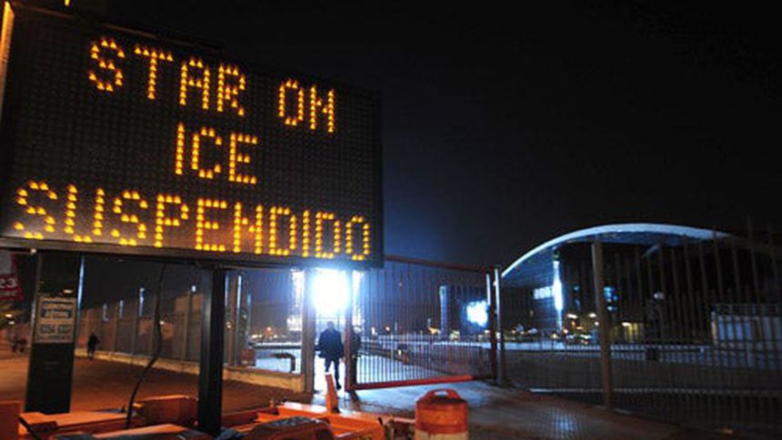 La leyenda de cancelación apareció en la pantalla gigante que se ubica en el estacionamiento de la Arena, además de un letrero colocado en la entrada con el anuncio ‘Stars on Ice Suspendido esta noche’.
