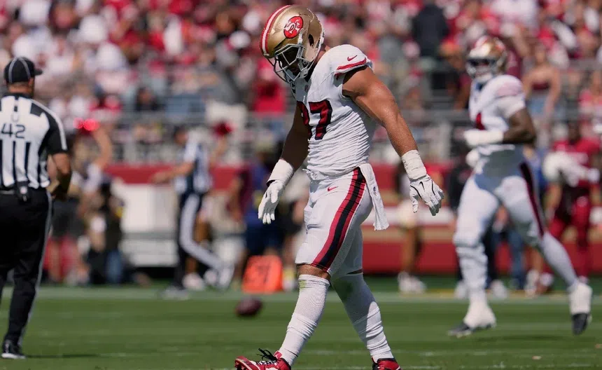 Nick Bosa de los 49ers sale lesionado ante Cardinals y manda señal de desaprobacion a la tribuna