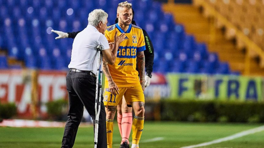 Ricardo Ferretti da instrucciones a Nico López durante el partido de Tigres vs Mazatlán | MEXSPORT