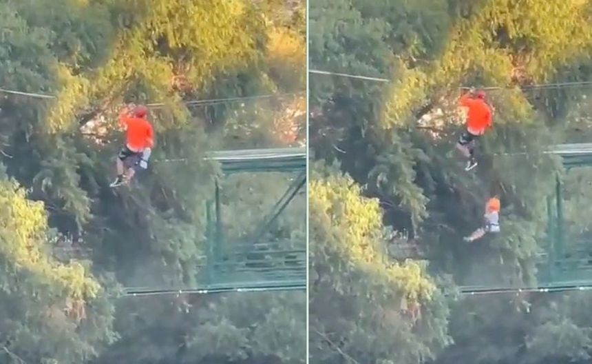 Un niño de 6 años de edad cayó desde una altura de 12 metros, tras fallar la bandola de seguridad de una tirolesa en el Parque Fundidora, en Monterrey, Nuevo León. El dramático momento quedó registrado en video y compartido en redes sociales la tarde del domingo, donde se reportó que el menor fue auxiliado por visitantes.