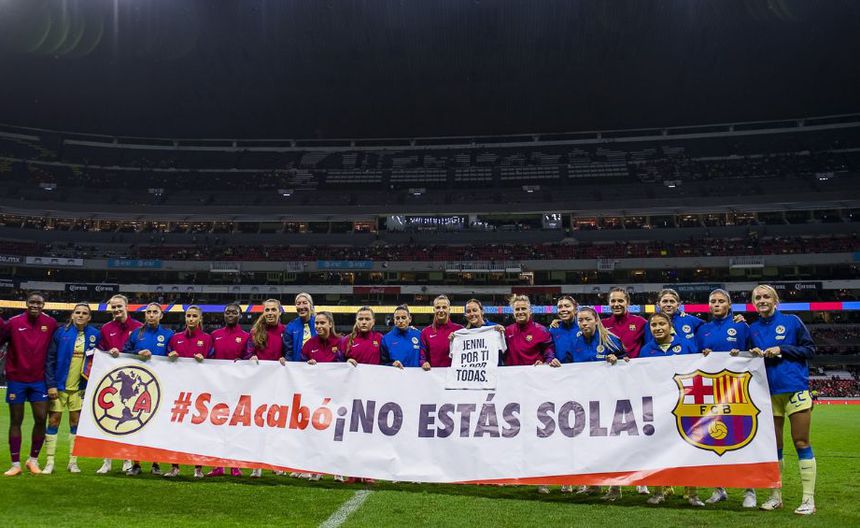Tras la ocurrido y las consecuencias que esto ha venido dejando, las jugadores del Barcelona Femenil y de las Águilas del América mandaron un previo al arranque del encuentro en la cancha del Estadio Azteca, el mensaje es claro “No estás sola”, mexicanas y españolas saltaron al campo con una pancarta en apoyo a su compañera de profesión y, en muchos casos, amiga de varias futbolistas que se encontraba en el césped de “El Coloso de Santa Úrsula”.