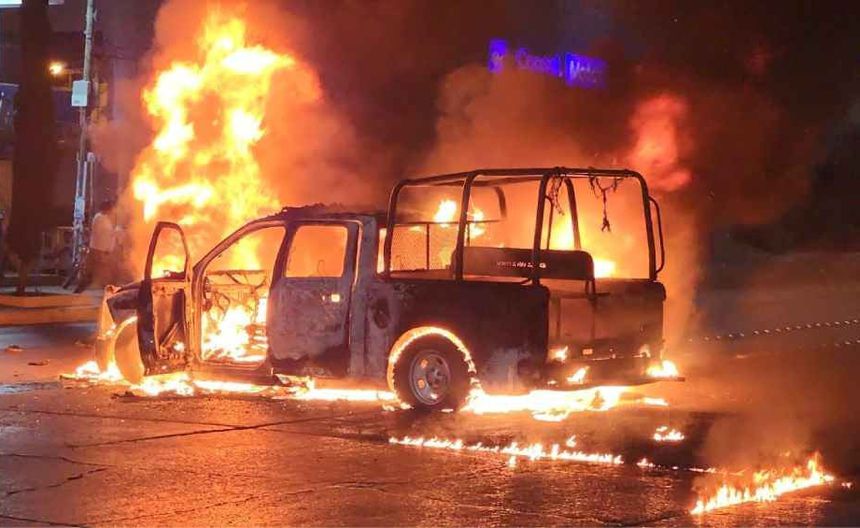 En su camino de regreso hacia la Normal en Tixtla, los estudiantes encontraron una patrulla de la Policía Estatal en Las Parotas, la cual fue incendiada mediante el uso de petardos. La situación también movilizó a elementos de Bomberos, quienes acudieron al lugar para sofocar las llamas del vehículo oficial incendiado.