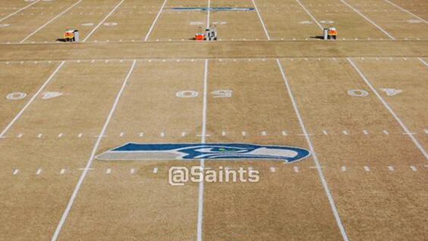 Nueva Orleans entrena en un campo con el logo de Seattle