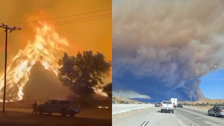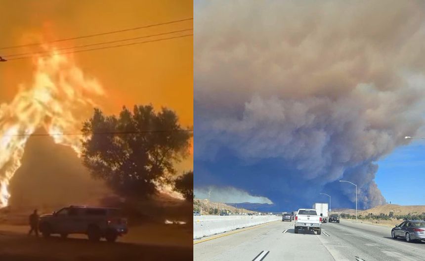 Un tramo de 48 kilómetros de la principal arteria norte-sur se reservó a vehículos de emergencia, para trasladar equipos y prevenir accidentes debido al humo que cruzaba la carretera. Equipos en tierra y en aviones cisterna intentaron evitar que el incendio, impulsado por el viento, cruzara la interestatal y se dirigiera hacia Castaic.