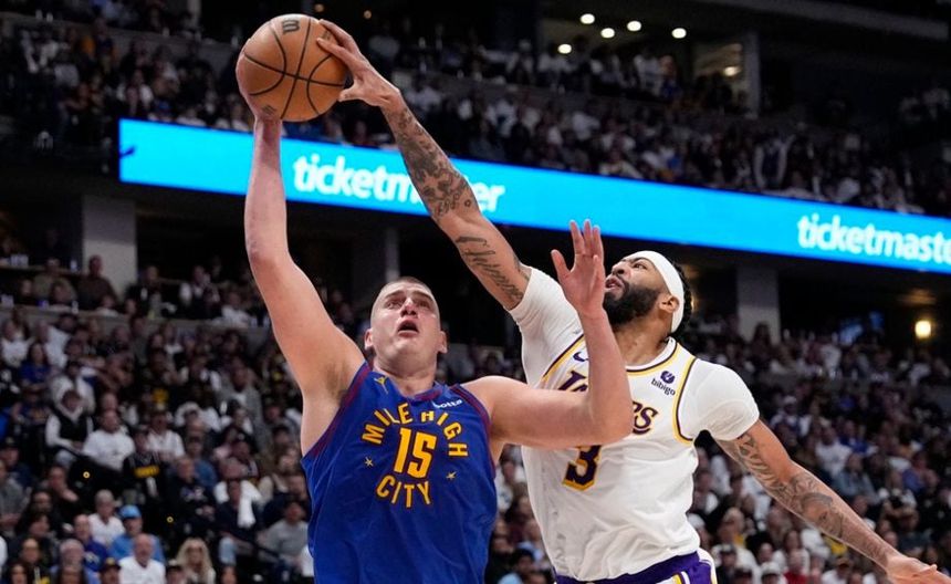 Nikola Jokic totalizó 32 puntos y 12 rebotes por Denver, que doblegó el sábado 114-103 a LeBron James y a Los Ángeles en el primer duelo de su serie de playoffs de la Conferencia Oeste.