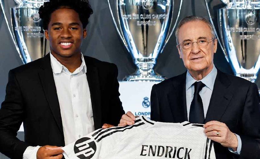 El joven delantero brasileño Endrick ha sido oficialmente presentado como nuevo jugador del Real Madrid. Acompañado por el presidente del club, Florentino Pérez, Endrick firmó el contrato que lo vinculará al equipo blanco durante las próximas seis temporadas.