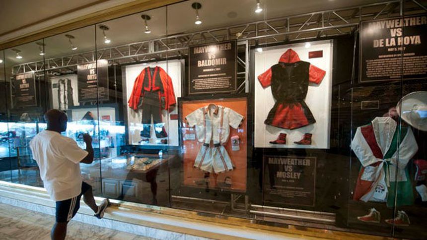 Otro de los atractivos que se aprecia al entrar al lugar, es observar una colección de vesturarios que Mayweather utilizó en diversas peleas, e incluso hay uno que vistió en su participación dentro del programa de baile ‘Dancing with the stars’, además de la extensa colección de cinturones de campeonato que posee.