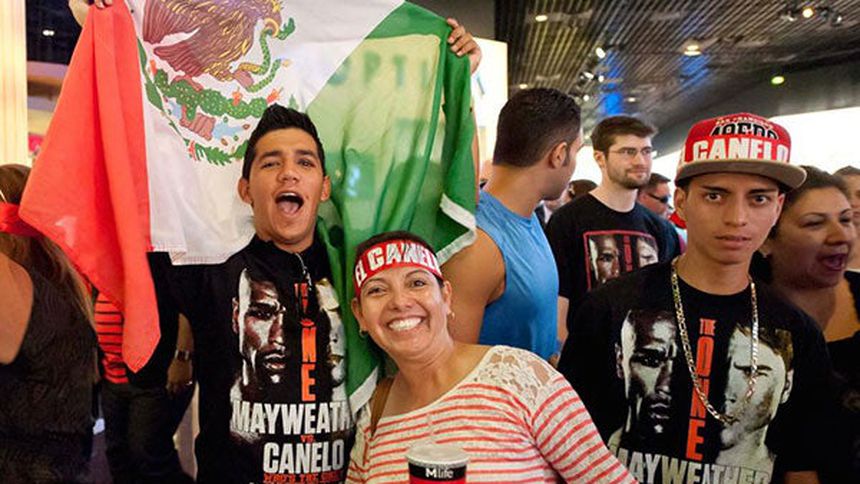 La euforia de los mexicanos opacó totalmente a los seguidores del ‘Money’. Banderas de México, enmascarados, sombreros, rostros pintados, cantos, mariachi, todo eso fue lo que se pudo ver camino al ensogado.