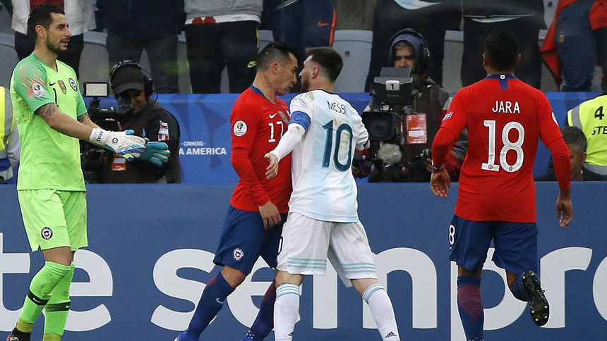 Messi fue expulsado junto con el central chileno Gary Medel en el minuto 37 tras una trifulca entre ambos que el colegiado paraguayo castigó con roja directa, una decisión que el VAR ratificó.