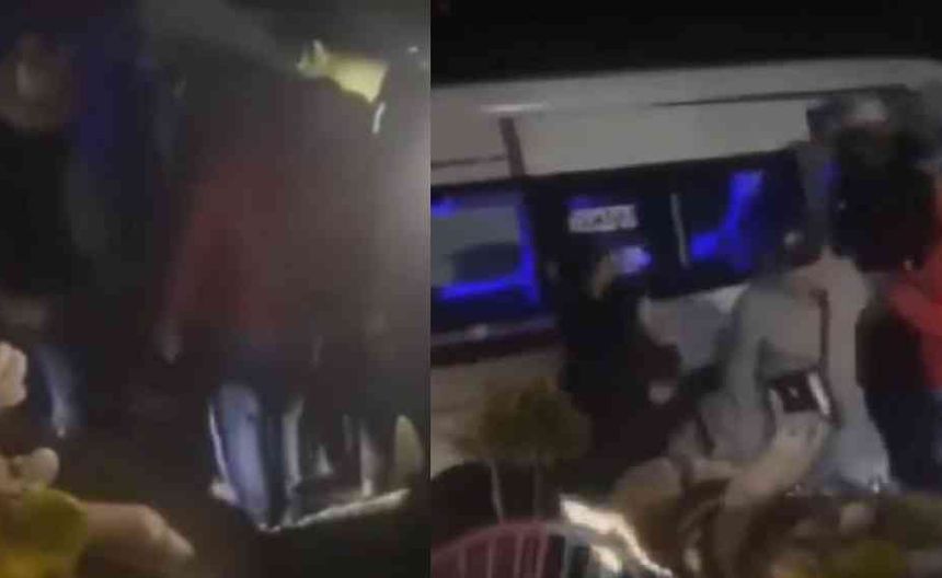 En el video con duración de poco más de un minuto, se observa cuando uno de los supuestos locatarios sube a la camioneta y baja a empujones y golpes a un joven, quien finalmente logra escapar. También se ve que caer al suelo a una mujer que estaba frente al vehículo, para luego de incorporarse, discutir con uno de los hombres con sombrero.
